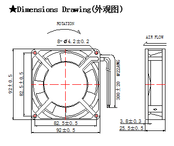 散熱風扇JXJ9225A2H-B,是公司常做穩定產品之一,此產品采用全銅線和矽鋼片生產,采用進口的NMB和ISC滾珠,中管通過用CNC精加工保證上下滾珠同心,采用5個葉片,主要用于電源,工業設備、等。靜音效果好,詳細請咨詢!18207676655. m.whwlcg.cn